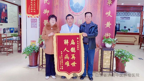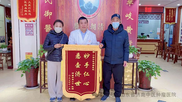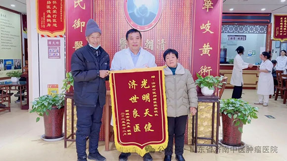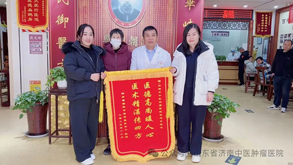 “扁鹊再世,解人病难”——来自新疆乌鲁木齐的75岁乳腺癌淋巴、骨多发转移母亲,因乳腺肿物肿块、疼痛愈加重,消瘦、进食愈差,活动无力、体质愈下降,于2025年5月份乌鲁木齐医院详细CT检查显示:乳腺癌,骨、右侧腋窝淋巴结、胸骨多发转移,肿瘤晚期。虽积极遵医嘱进行了化疗等治疗,后又奔走多地广泛寻中医,但效果始终不尽人意,不仅口服中药无效,化疗更致病情重、体质愈下降,蜡黄消瘦、无力行走。而奈何因老伴始终对中医保有的执着、再一次的奔赴找到,令爱人重获新生——自25年7月夫妻首次奔往济南中医肿瘤医院、就诊求助秦院长,截至25年12月末,妻子已得救转危为安五个月!而其一路所获,从非次次回忆必感慨的最初三日成果:因曾治疗受苦太久、病太久,首次用药三日内的迅速转好,令自己不敢相信疗效作用、甚以为产生“幻觉”,而继续用药后的日日进步,体力、活动力的日渐改善,疼痛转好、精神睡眠的日渐提升,每天都收获着的幸福体验,才自然接受了一切切实发生于自身的真实。而老伴的“唯秦院长能给予正面回应、明确回应”之回忆,再让人见证独到中医治癌思维与自信的力量。今面对被赋予着“非个人之名,是为世间千万癌症患者、对人间癌苦有救赎致以的敬意”大爱意义上的锦旗寄语,更让济南中医肿瘤医院受教受益:大爱无疆,救人生命永不止息!