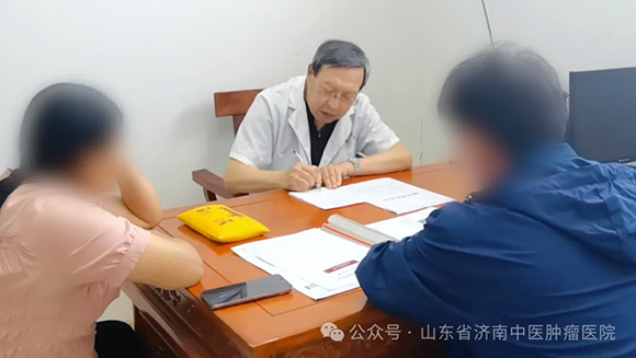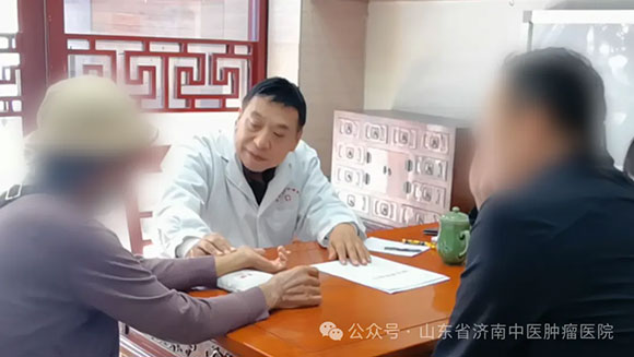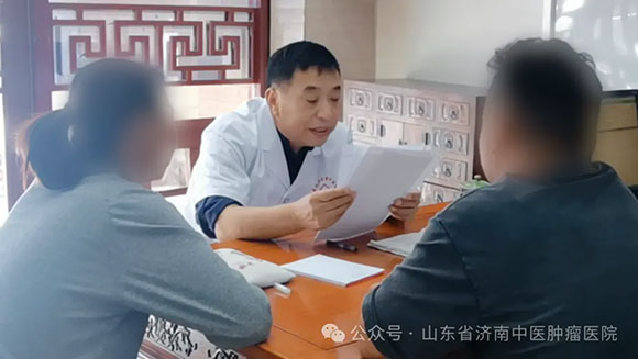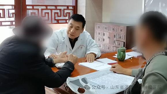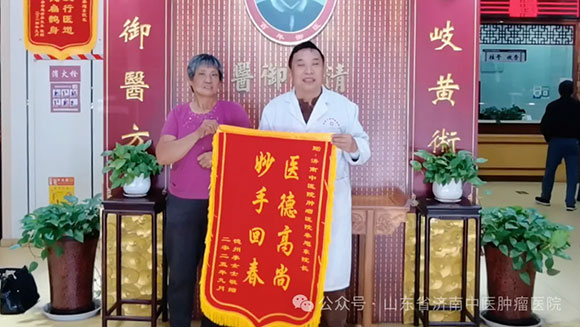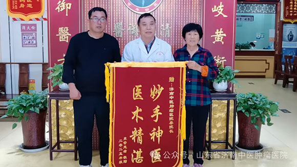 山东东明一位74岁的老父亲,在当地确诊肺癌并进行了手术切除,不料术后情况急剧恶化:剧烈胸痛、咳痰带血、无法进食,老人一度奄奄一息……儿子心如刀绞,为延长父亲生命四处奔走求救,最终在病友的推荐下,找到秦院长接受“清瘀保肺疗法”治疗。令人惊喜的是,用药仅7天,父亲剧烈疼痛和咳嗽就明显缓解;20天后,疼痛、咳血大幅减轻,开始愿意吃饭;两个月时,老人疼痛、咳血基本消失,食欲恢复,甚至能自己下地走路!一家人万万没想到百年御医方如此神效,儿子说“济南中医肿瘤医院给了父亲第二次生命,能够控制病情、减轻父亲痛苦、延长父亲生命就是我最大心愿!感谢秦院长帮我实现了这一心愿!”
